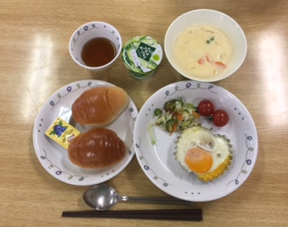 学園でいただく食事もこれが最後です。今日は天気も良いので、たくさん遊べるよう、しっかりと食べます。