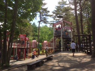 庭園の中にあるアスレチックで遊びました。人気ナンバーワンはジャンボ滑り台です。木立の中、空気も爽やかでした。