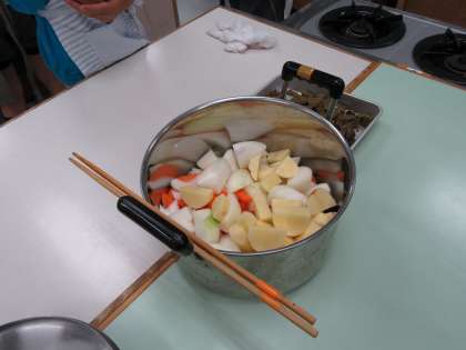 本日は、雨の中を川場移動教室に向けて、飯盒とカレー作りにチャレンジしました。それぞれの先生からコツを教えていただきました。今日の給食は、5年生はカレーとごはんです。
