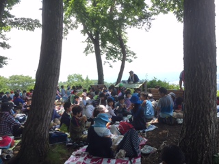 11:40 山頂に到着しました。ビレッジから約300メートル登りました。山頂付近の標高は、約1100メートル。スカイツリーに東京タワーがのった高さです。全員よく頑張り最後まで歩きました。