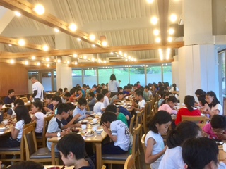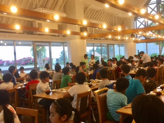 おかずのお皿にマスの塩焼きがのり、ちょっと豪華な夕食になりました。