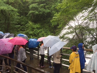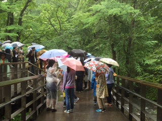 戦場ヶ原入口の湯滝まで来ました。雨足は中々弱る気配がありません。ハイキングをあきらめ、中禅寺湖畔の二荒山レストセンターに向かうことにしました。