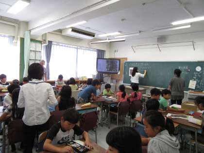 本日は、世田谷美術館の学芸員さんとボランティアの方が学校に来て、所蔵作品の鑑賞の授業を行いました。美術鑑賞教室で実際に見た作品だったので、子供たちは思い出しながらそれぞれの感想をコメントし合っていました。