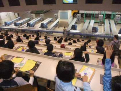 ました。生花市場では、セリの模擬体験ができ、一人ひとりお花をもらって