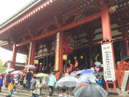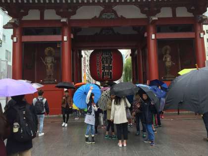 午前中は、二天門から浅草寺境内を中心に、浅草寺・仲見世・雷門を見学しました。傘をさしての見学でしたが、大きな建物や雷門の提灯などを見て回りました。