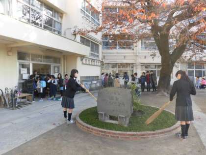 29日 30日は 朝早くから弦巻中学校の生徒が落ち葉はきをしてくれました。紅葉が目を楽しませてくれる時期ですが、落ち葉はそのままにしておけないのでこのように手伝ってくれることはとてもありがたいことです。中学生の姿から小学生も学んでいきます。