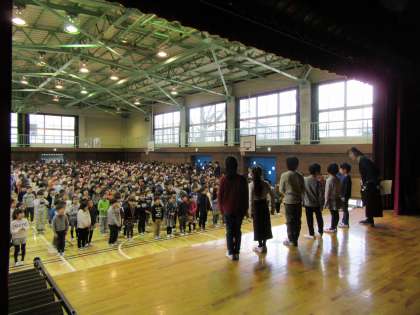 1月9日 3学期の始業式で元気な児童の姿に加えて新たに6名の転入生が加わりました。