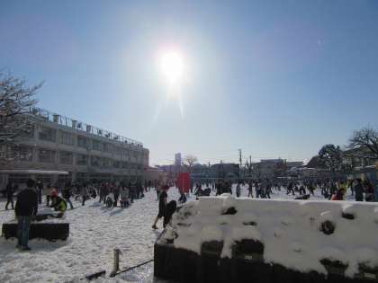 本日は、珍しく昨日の積雪で校庭が真っ白になりました。特別の時程で1・2校時のみ雪遊びをしました。雪に触って掛け合い、雪だるまをつくりました。サプライズの遊びの時間に子どもたちは大喜びでした。