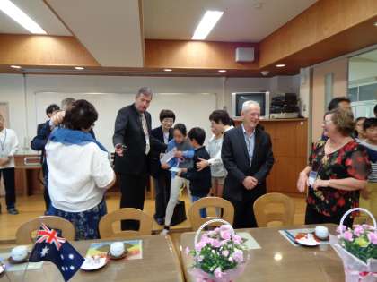 6年生が外国語学習の成果を発揮し、バンバリー市長のブレナンさんをはじめ、お客様を学校案内しました。