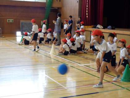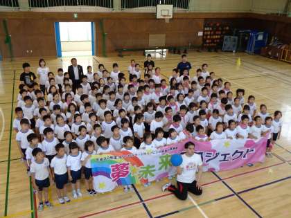 弦巻小学校4年生がゴールボールの実技体験をしました。