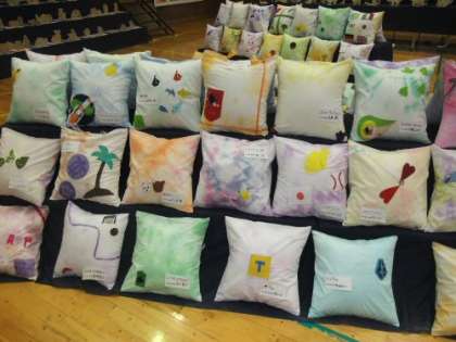 5年生は「アニマルタオルかけ」 6年生は「クッション」