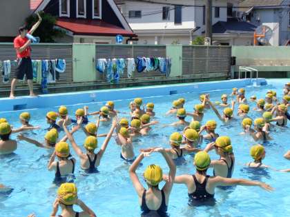 朝から気温も上がり、水泳指導第1号。5年生は気持ちよさそうでした。