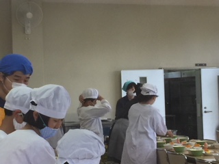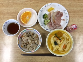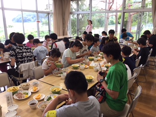 2日目の夕食には、毎年、山梨名物のほうとうがメニューに入ります。1日たくさん歩いたので、とてもお腹がすきました。