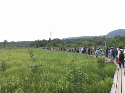 戦場ヶ原も終盤。男体山のよく見える場所に出てきました。幸運なことに今日は薄曇りです。気温も24度と相変わらず爽やかです。