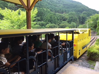 足尾銅山坑道跡の見学をしました。トロッコに乗り坑道内に入り展示物の見学をしました。坑道の中はとても涼しかったです。現在の天気は曇りですが、25度前後の気温です。