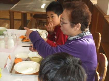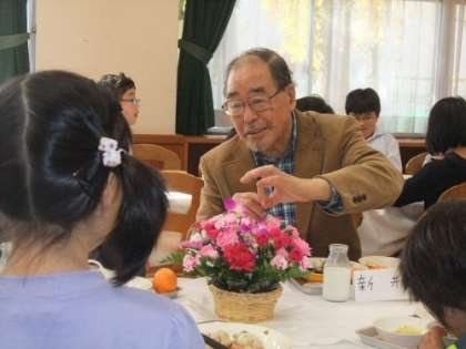 先日から4年生では、地域のお年寄りとふれあい給食を行って