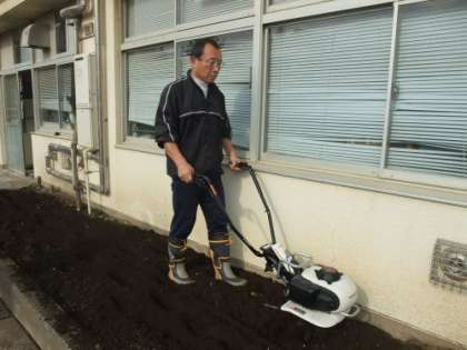 その強い味方が「耕運機」です。PTAのお母さん方に無理を
