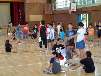 いよいよ月曜日に迫った川場移動教室。体育館でキャンプファイヤーの練習をしました。