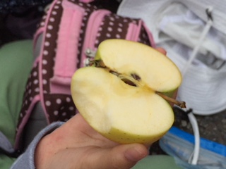 宮田果樹園で、お話をうかがい、りんごの試食とリンゴジュースをいただきました。ビレッジのジュースとは違った味でした。とても美味しかったです。