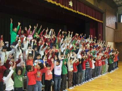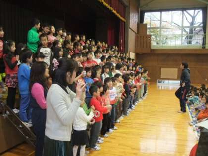 今朝は、音楽集会でした。1年生の元気な歌声が体育館いっぱいに