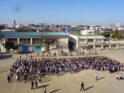 朝からよく晴れて富士山まで見えます。今日は弦巻小学校の開校記念日です。