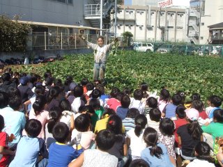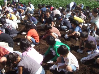 収穫の秋の始まりです。4年生が、サツマイモを掘りに出かけました。