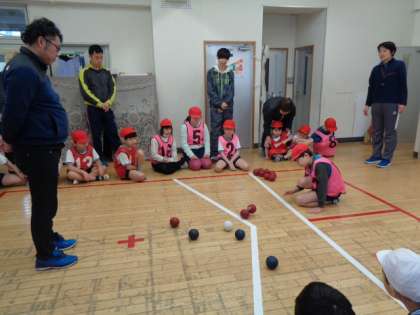 ゲストティーチャーを招いて、ボッチャの競技の楽しさに触れました。