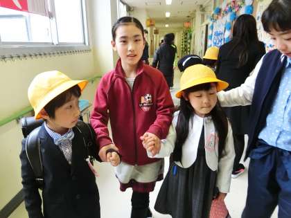 なりたての6年生が優しく、新入生のお手伝いを頑張りました。