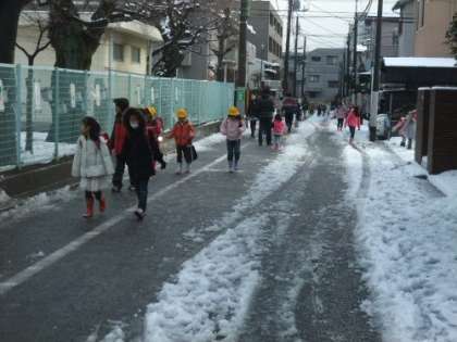 昨夜降った雪が積もりました。でも、今回の雪は朝には