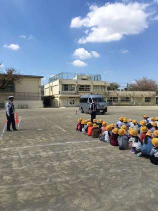 お巡りさんの話を真剣に聞いて安全な歩き方を学びました。