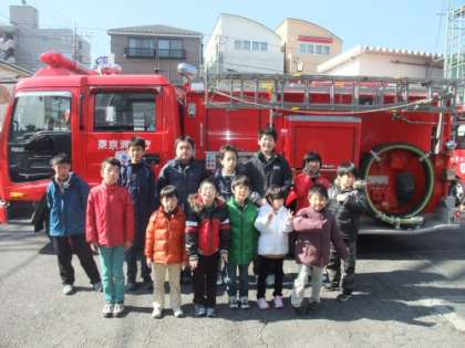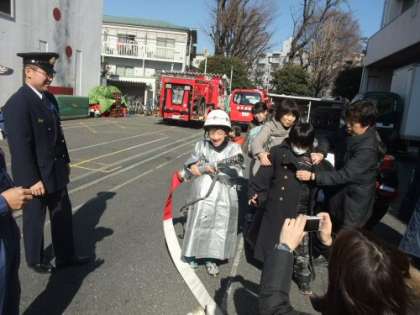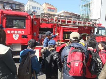放水訓練をさせたもらったり、消防車に乗ったりしました。