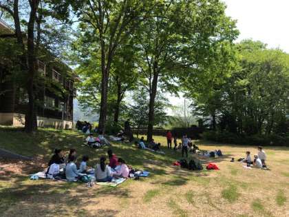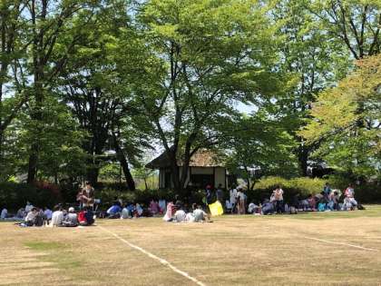 歴史民俗資料館の前で、お弁当です。天気も良くて、気持ちいいです。