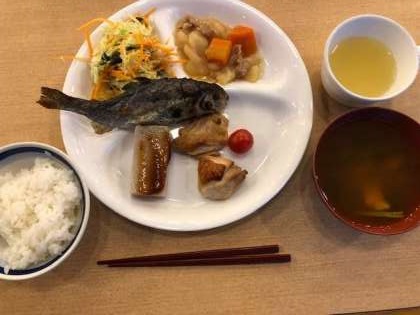雨のためマスつかみはできませんでしたが、夕食にマスの塩焼きを出していただきました。