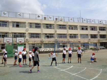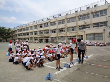 高学年が低学年の面倒をみてスポーツテストを実施しました。