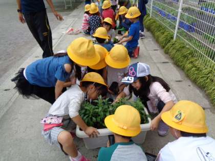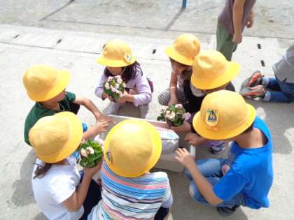 学校で植えたお花で、オリンピックに来た方々をお迎えします。駅や馬事公苑に飾られます。