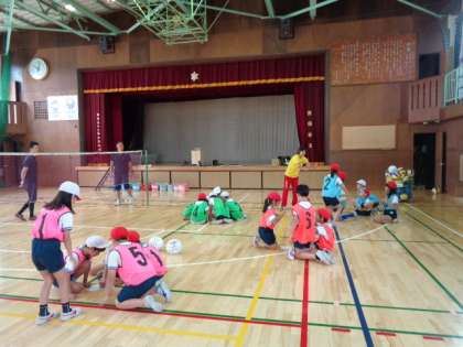今日はオリパラデーです。4年生がデフビーチバレーを体験しました。声を出さずに、無音の世界でコミュニケーションをとったり、バレーボールを体験したりして貴重な体験をしました。誰も話さないので静かな授業ですが、とっても活発に学習できました。