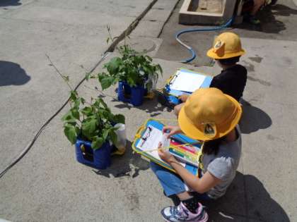 アサガオが大きく育ってきました。葉っぱも増えてつるも伸びてきました。どんな様子か詳しく観察しました。