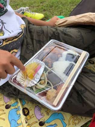 広場でお弁当。