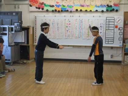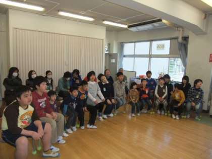 みんな、6年生の卒業を祝っています。ゲームや歌