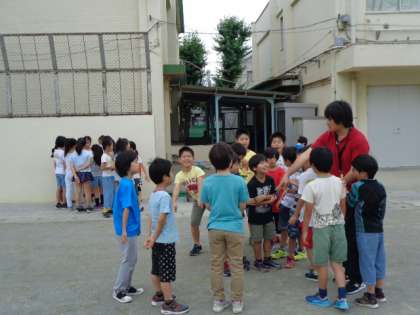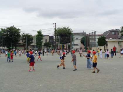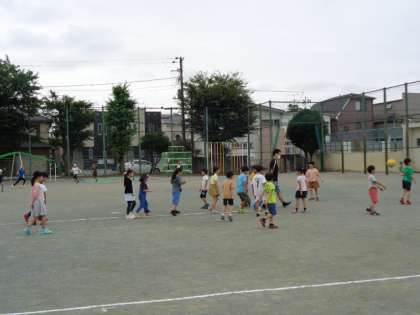 梅雨の合間、校庭で遊べる日も少なく貴重な一日です。涼しいので元気に遊んでいます。