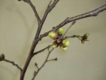校庭の桜のつぼみも大きく膨らんできました。花壇では、