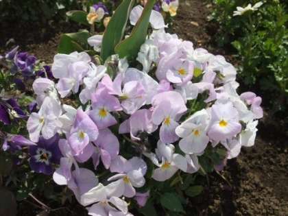 子どもたちの植えた花々が、今 見頃です。観察池では