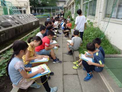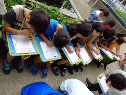 職員室前のヘチマも大きくなってきました。葉や花・茎の様子を詳しく観察しました。