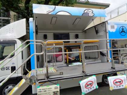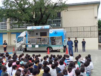 7月の避難訓練でした。地震の想定で自分の身を守れる行動ができたでしょうか。消防署の方に話を聞いたり、起震車体験をしたりしました。