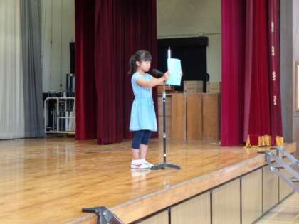 児童代表で1学期頑張ったこと、2学期に頑張りたいことなど発表してくれました。