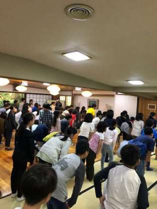 広間で朝会です。時間に集合し、靴もちゃんと並べています。