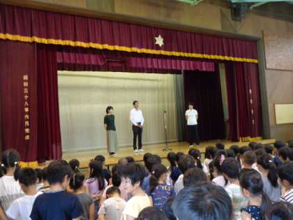 『お陰様』で、2学期が始まりました。一回り成長した子どもたちの顔を見られて安心しました。2学期からの新しい先生・転入生の紹介もしました。