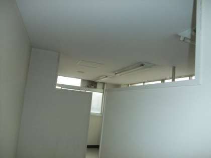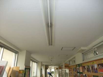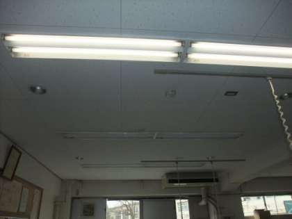 廊下・トイレの電気は消し、職員室の蛍光灯も一列だけにしました。