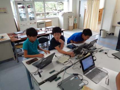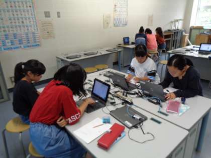 伝統文化についてPCで調べています。検索して調べるのは難しいです。10月には体験活動もあります。