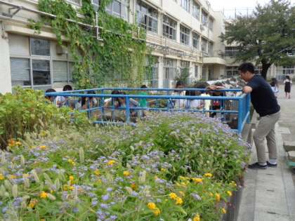 校庭で「小さな生きもの」をさがしました。